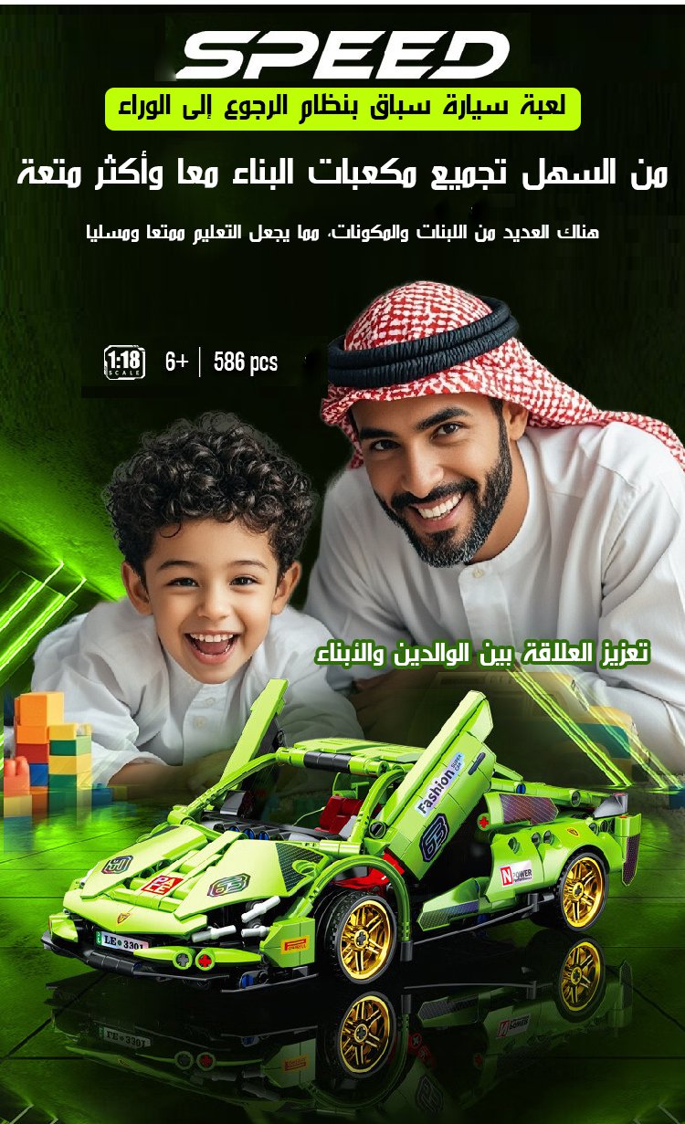لعبة سيارة سباق بنظام الرجوع إلى الوراء من مكعبات البناء【حقق حلم الطفل في السباق】