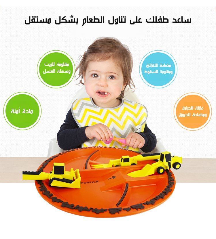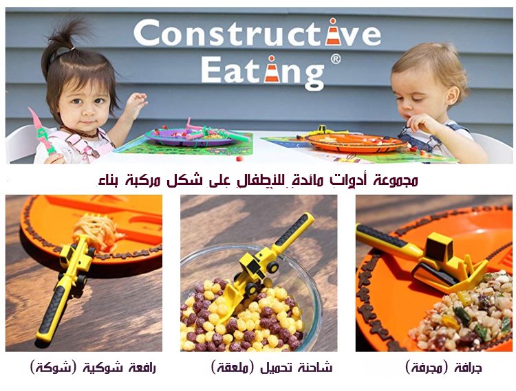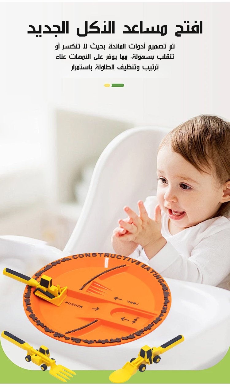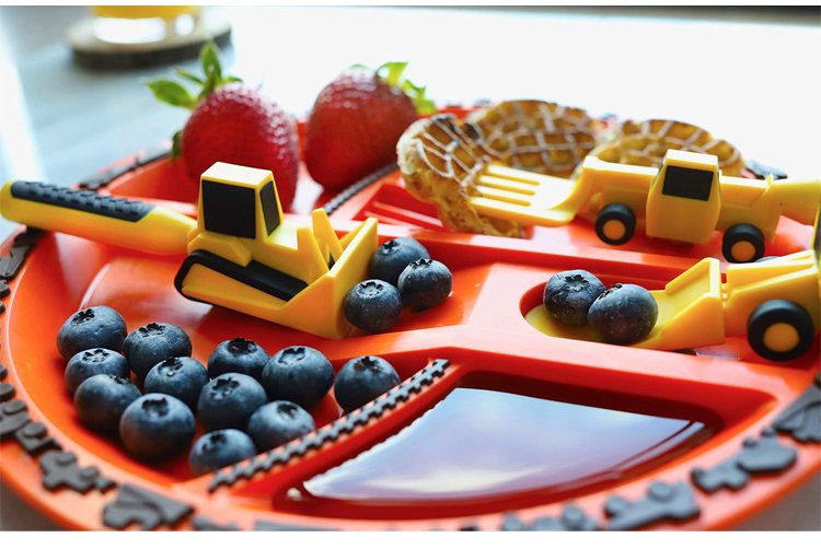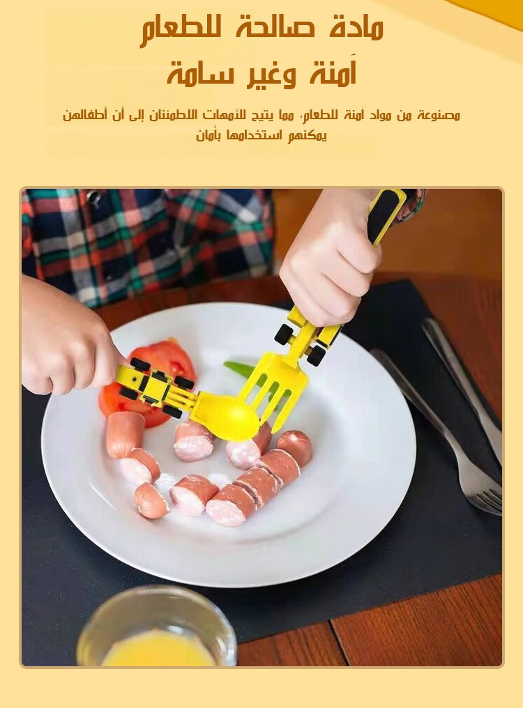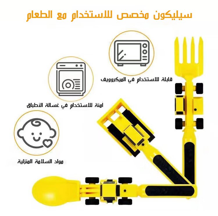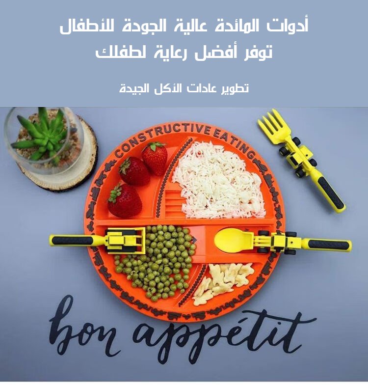مجموعة أدوات مائدة للأطفال على شكل مركبة بناء، مكونة من ثلاث قطع